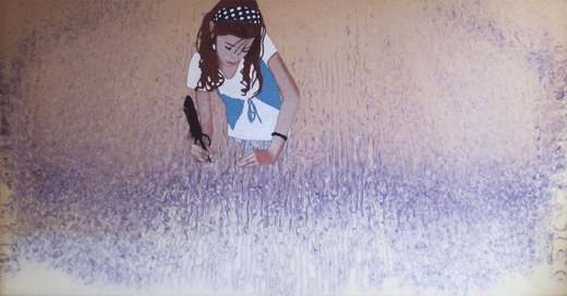 2008 acrylic on foam material and a feather 203 x 104 cm